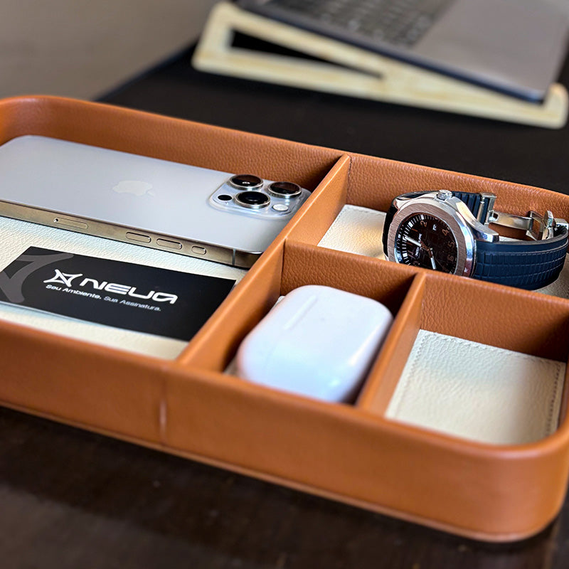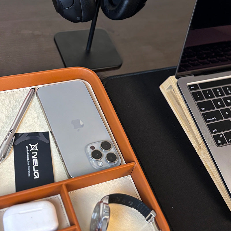 Sua produtividade não pode depender de caça aos objetos perdidos. Não aceite caos quando pode ter ordem elegante. Transforme mesa em santuário de foco.