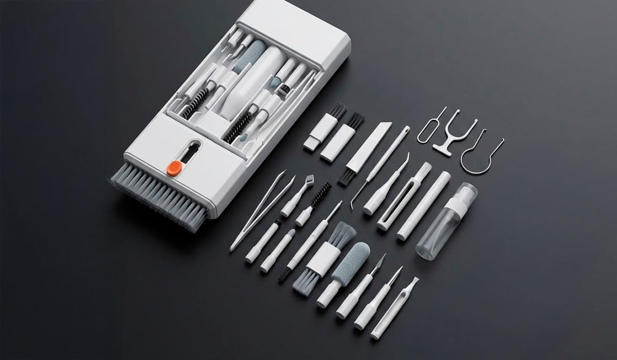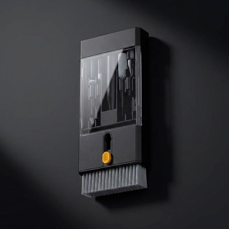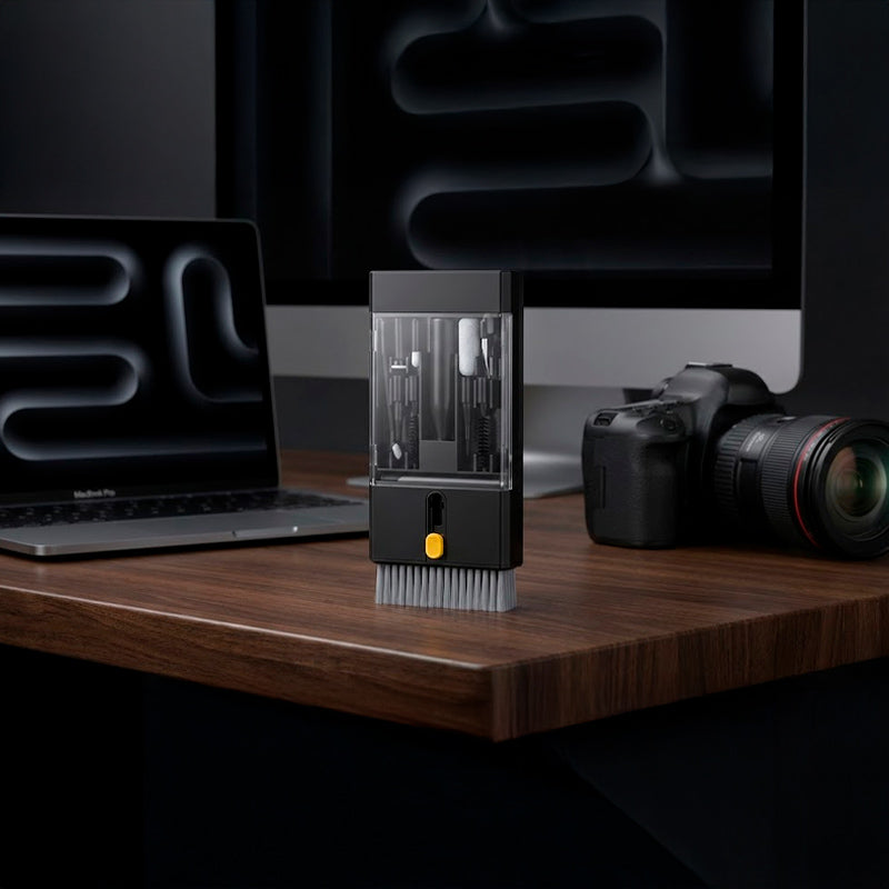 Cerdas ultra-macias, metal anti-riscos, microfibra grau óptico. Cada componente selecionado para máxima eficiência sem comprometer a integridade dos seus dispositivos.